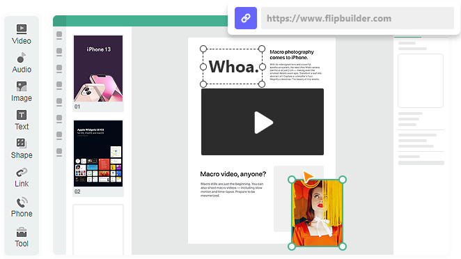 Flip PDF Plus Pro knows that engaging elements are significant in creating and designing an interactive ebook. HD photos, text, GIFs, videos, audio, customized logos, and colors are essential in ebook design, as they are helping describe the content with a variety of details. In addition, this free ebook creator allows users to add trigger actions to their ebooks, such as clickable links, phone numbers, emails, hotspots, and pop-ups. They do a great job of contacting the audience as well as leaving the audience with a deep impression.