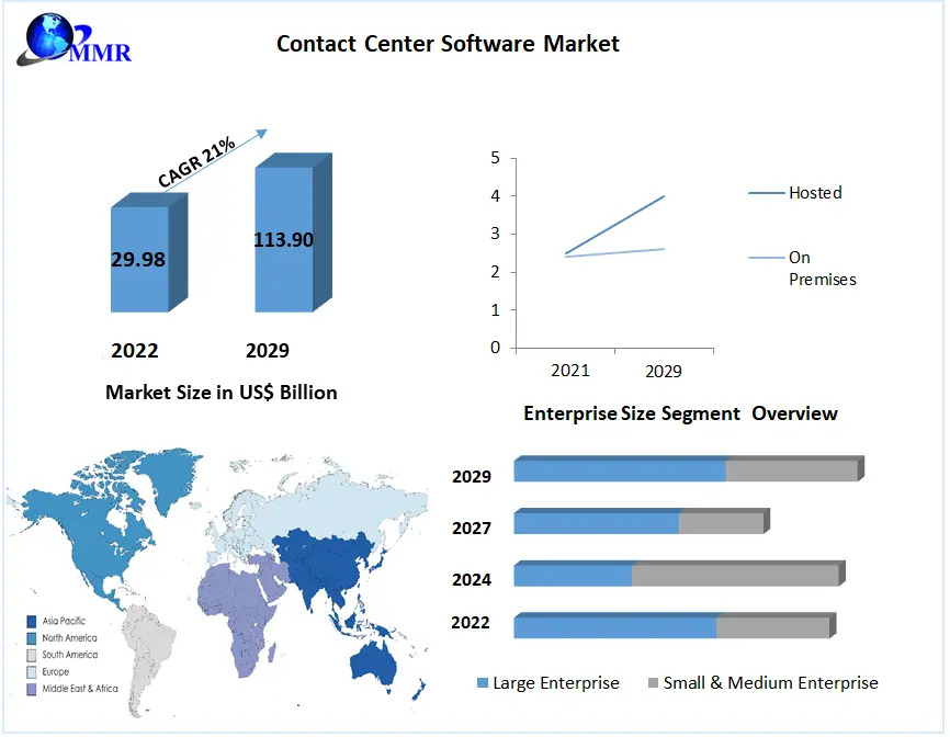 Pune, 12, April 2023: The report expects the Contact Center Software Market to grow from USD 29.98 Bn in 2022 to USD 113.90 Bn by 2029 at a CAGR of 21 percent over the forecast period. The report is a mixture of primary and secondary data and the domain expert has analyzed the Contact Center Software Market from a local, global and regional point of view.