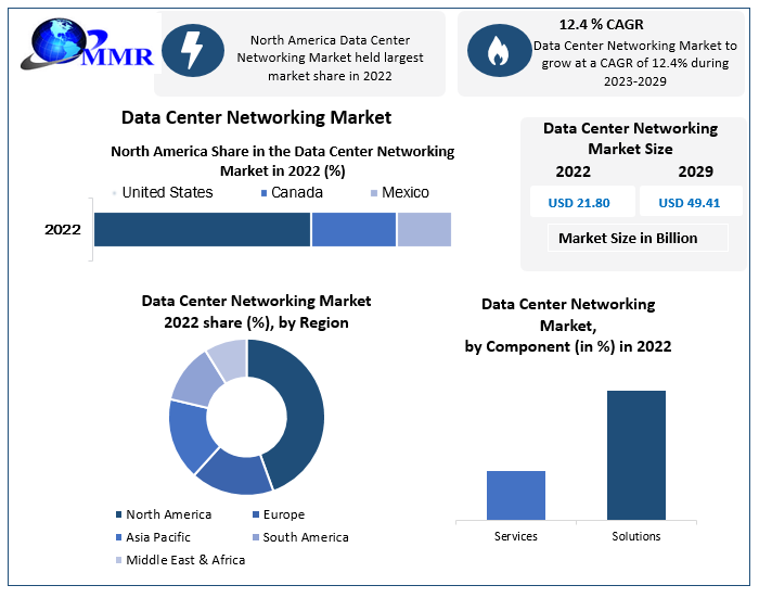 Pune, 21, April, 2023: Maximize Market Research, an Information Technology & Telecommunication business research firm has published a report on the “Data Center Networking Market”. The total opportunity for Data Center Networking Market was USD 21.80 Bn in 2022 and is expected to grow at 12.4 percent CAGR through the forecast period to reach USD 49.41 Bn by 2029.