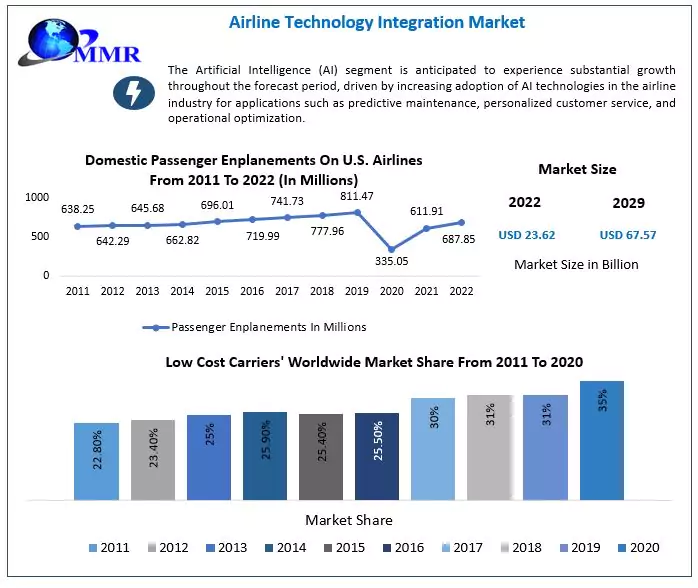 Pune, 26, April, 2023: As per Maximize Market Research, a global business research and consultancy firm, the total global Airline Technology Integration Market was USD 23.62 Bn in 2022 and is expected to grow at a CAGR of 16.2 percent over the forecast period to reach USD 67.57 Bn by 2029.