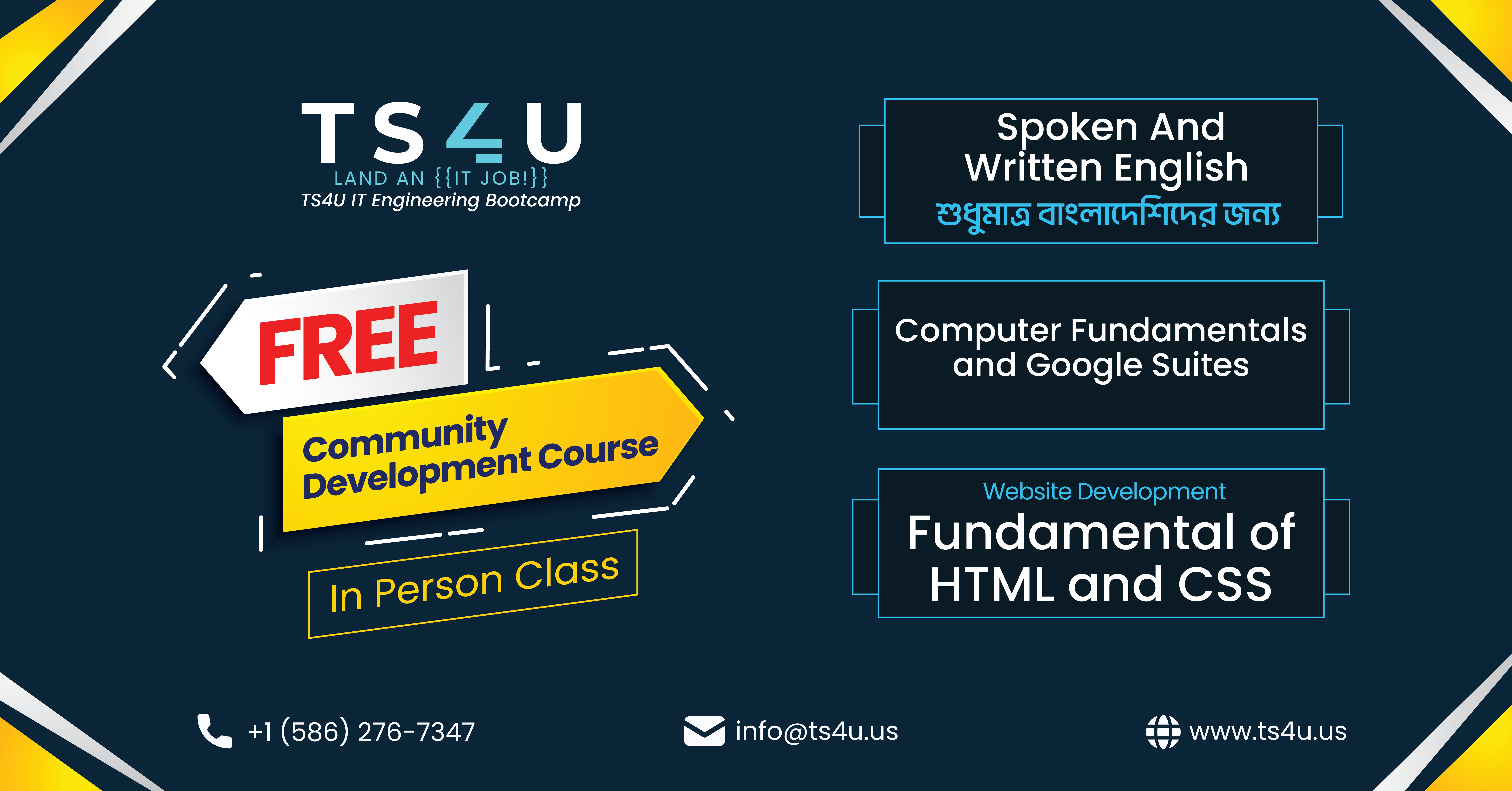 The free courses will cover various topics, including basic fundamental IT skills, email communication, Google Suite training, and HTML and CSS web development. In addition, free classes for spoken and written English will be made available for the Bangladeshi community.