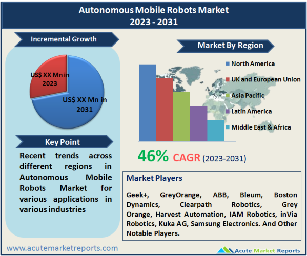 According to the latest report published by Acute Market Reports “Autonomous Mobile Robots Market” – Growth, Future Prospects and Competitive Analysis, 2023-2031,” the global Autonomous Mobile Robots Market is expected to expand at a CAGR of 46% from 2023 to 2031.